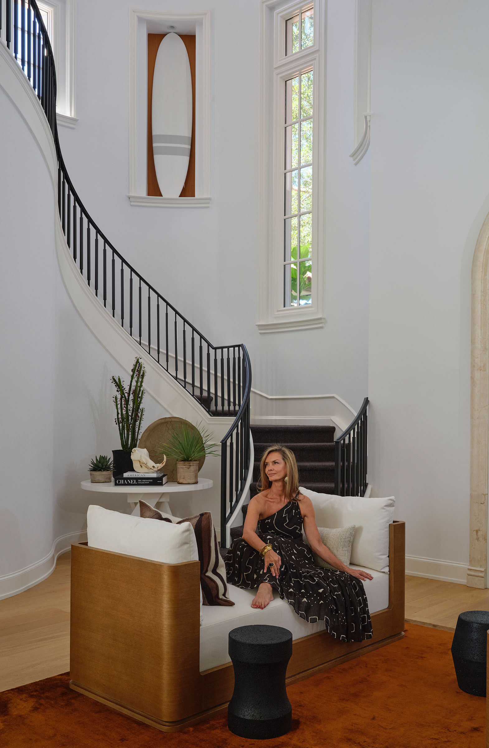 The interiors expert borrowed aspects of West Coast style to achieve a coastal, laid-back vibe. Visit Galerie Magazine to read the complete feature article written by Kathleen Hackett. Photos courtesy of Carmel Brantley.